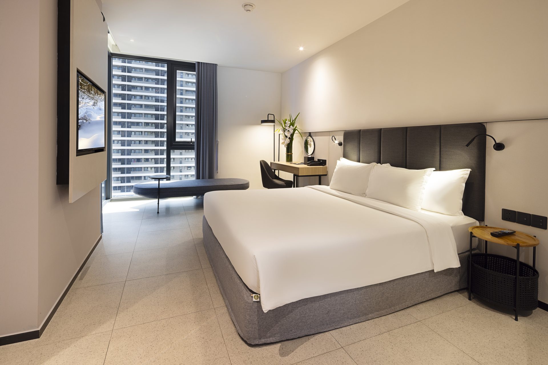 Rooms overlooking the city are luxuriously designed. Modern equipment and colors, full amenities to meet the need of both leisure and business travelers.